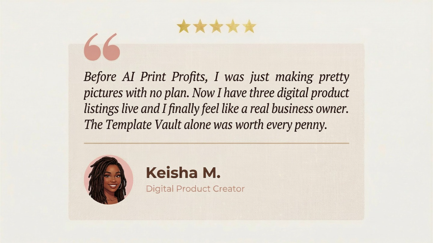 👉🏾Unsure of what to create? We got you covered! Bonus: The AI Print Profits Template Vault