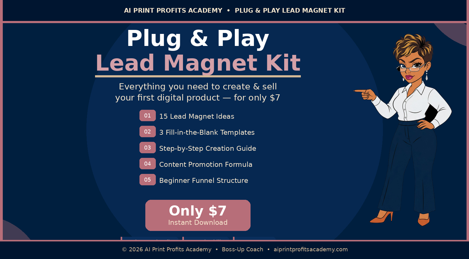 Get the Plug & Play Lead Magnet Kit for only $7. Instant download, beginner-friendly, and no tech skills needed.